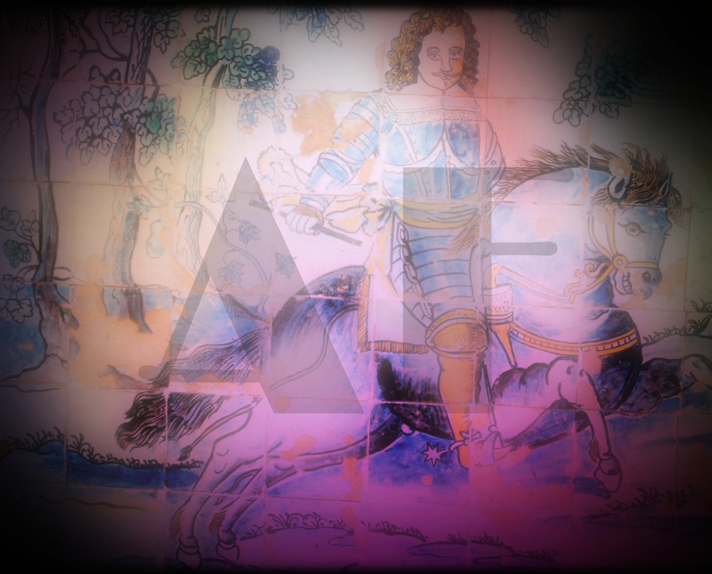 Cette œuvre captivante capture l’essence de la chevalerie et de la noblesse à travers un panneau d’azulejos portugais magnifiquement orné. Le noble chevalier, revêtu d’une armure étincelante, monte fièrement son cheval majestueux, créant une scène d’une grande élégance et d’une grande bravoure. Les détails minutieux de l’armure, des armes et des traits du chevalier et de son destrier ajoutent une dimension de réalisme et de grandeur à l’ensemble de la composition. Les couleurs vives et les motifs complexes typiques des azulejos portugais confèrent une touche de tradition et de raffinement à cette représentation artistique, faisant de cette photographie une véritable œuvre d’art qui célèbre l’héritage culturel et historique du Portugal.